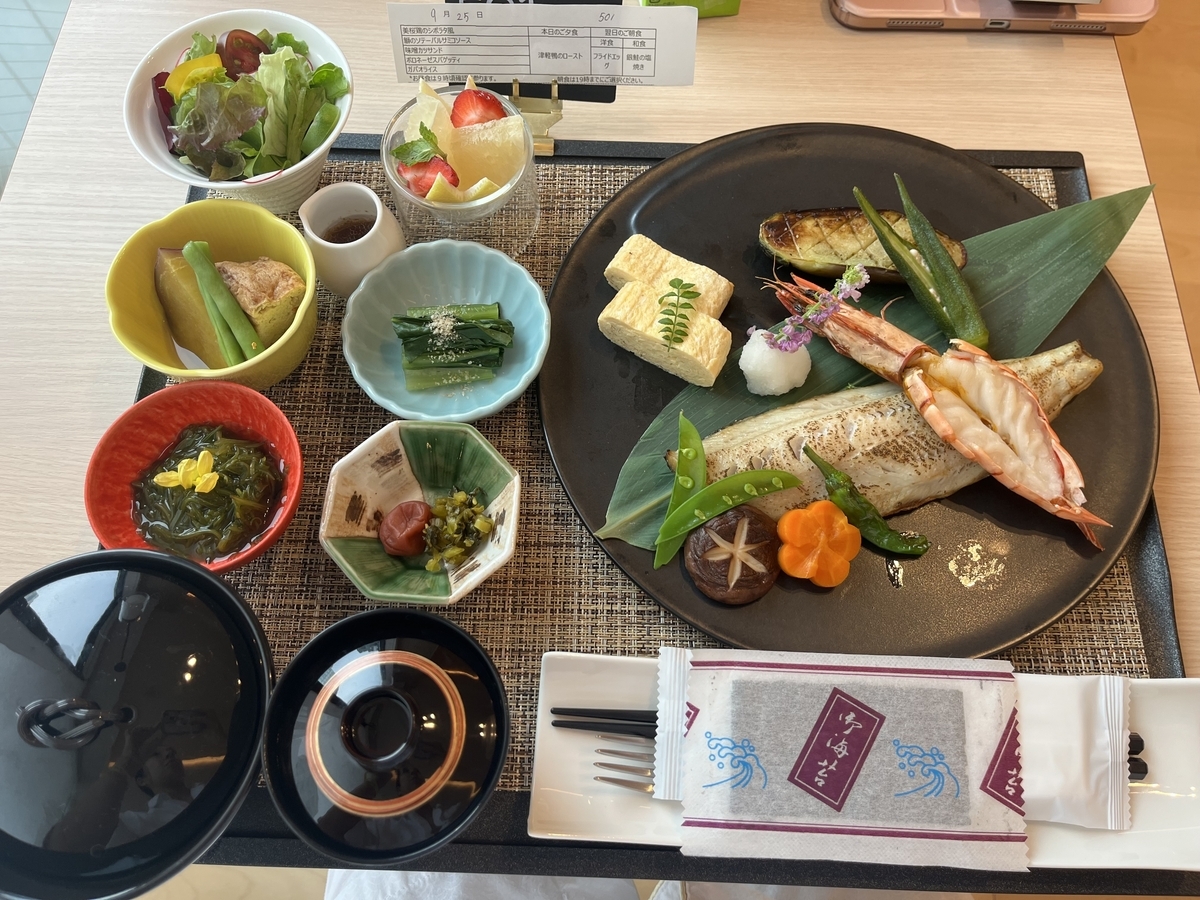 ボリューム満点だけど、野菜や果物、たんぱく質もしっかりとれて、バランスの良い食事だったと思います。汁物にもしっかり具材が入っていたり、お米がちゃんと美味しかったりするところが嬉しかった!一回もハズレがなかった。